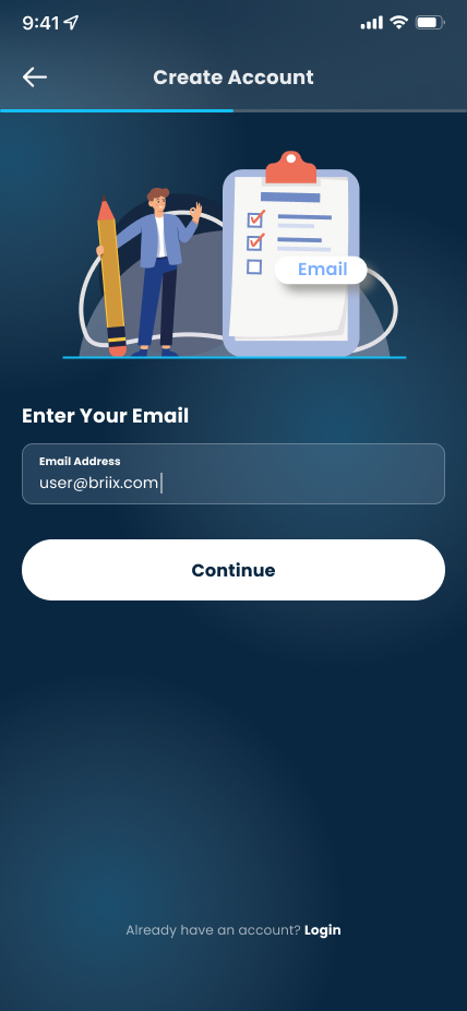 You can register for Briix account, with your email. Simply insert your email and wait until you received verification code, sent to your mailbox. If you cannot find your verification code, please check your spam folder.